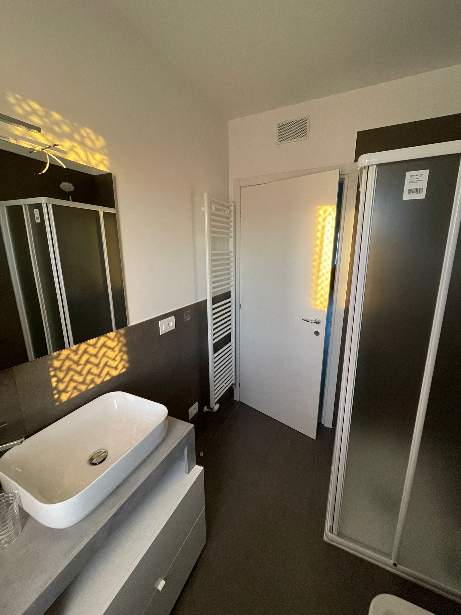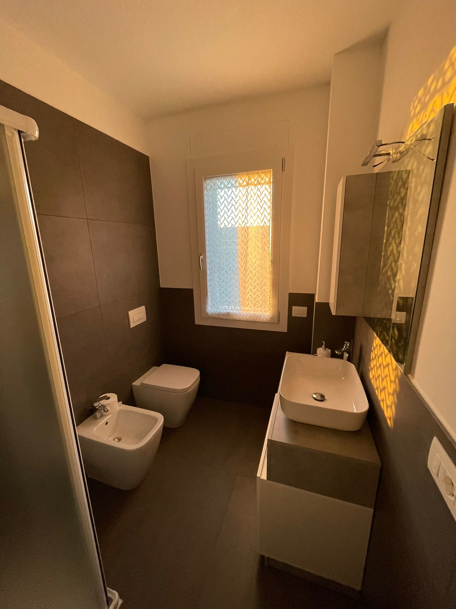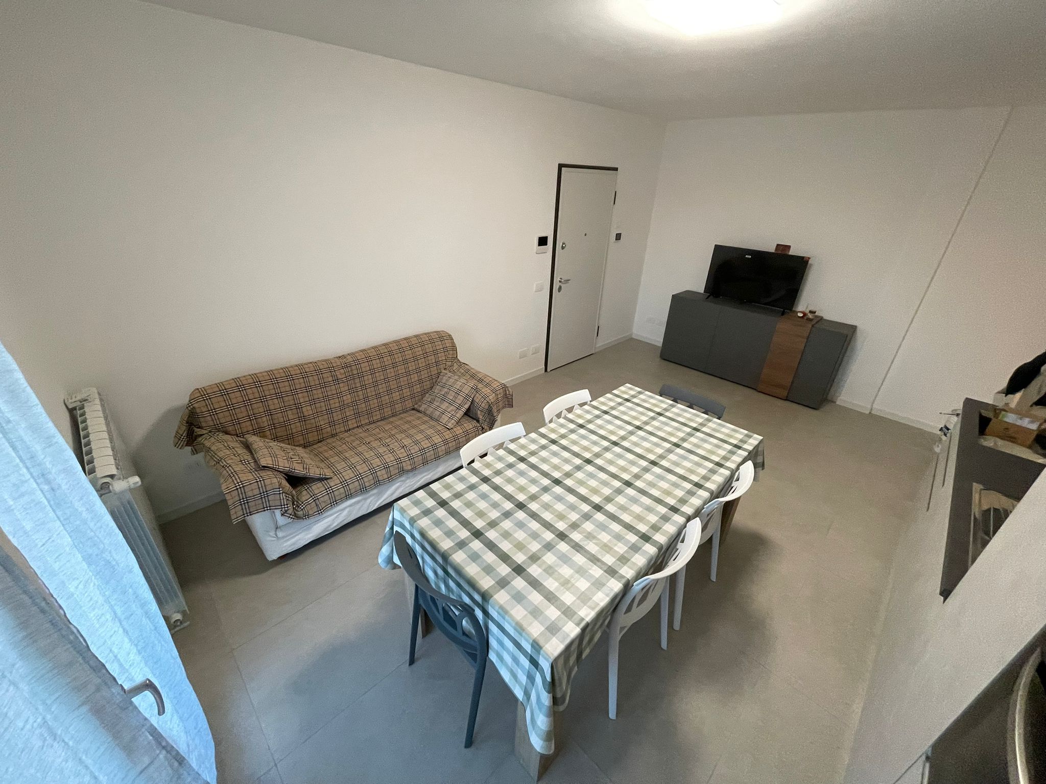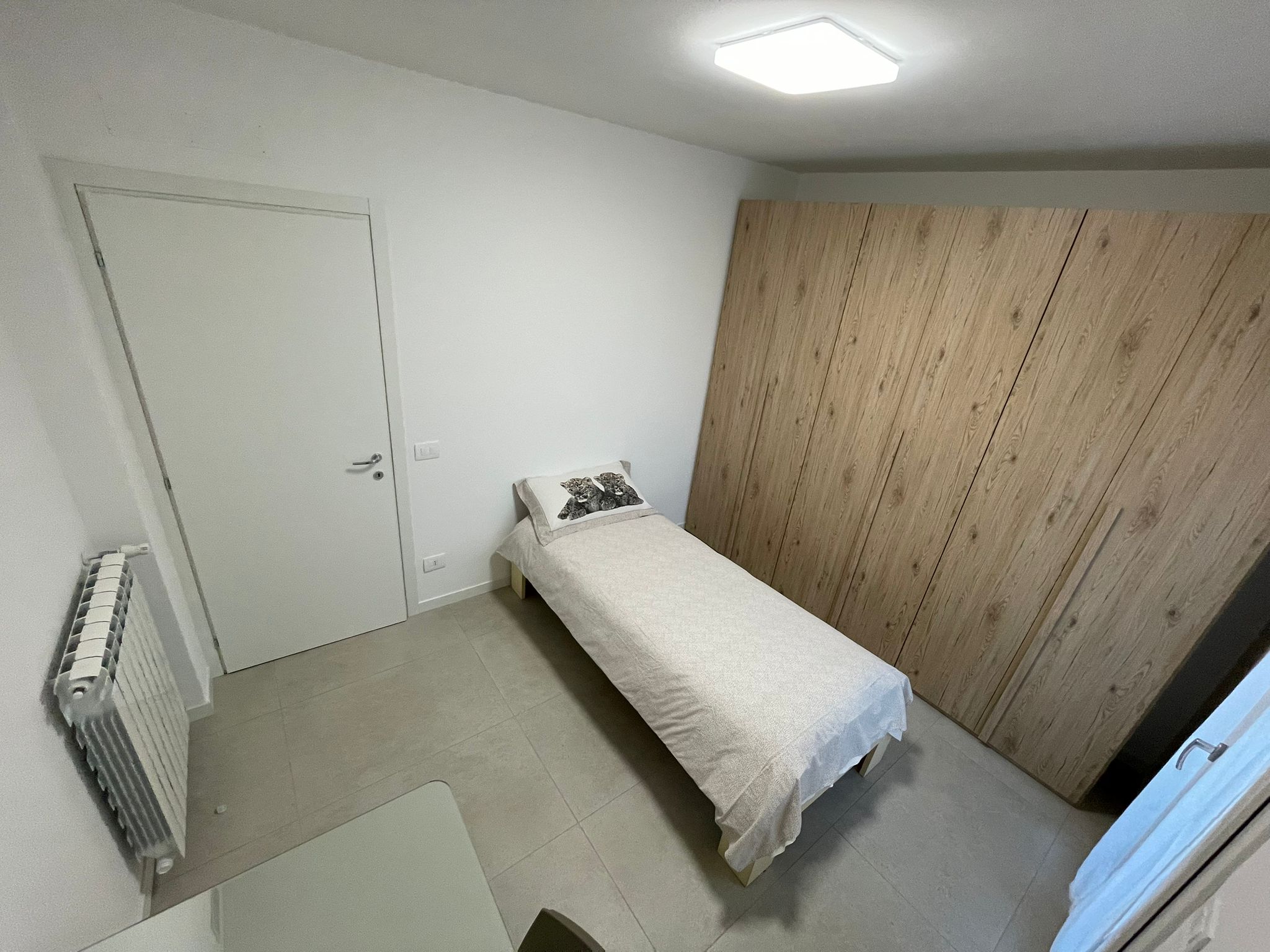 L’appartamento è composto da ingresso su living con cucina a vista, quattro camere da letto singole e due bagni finestrati.